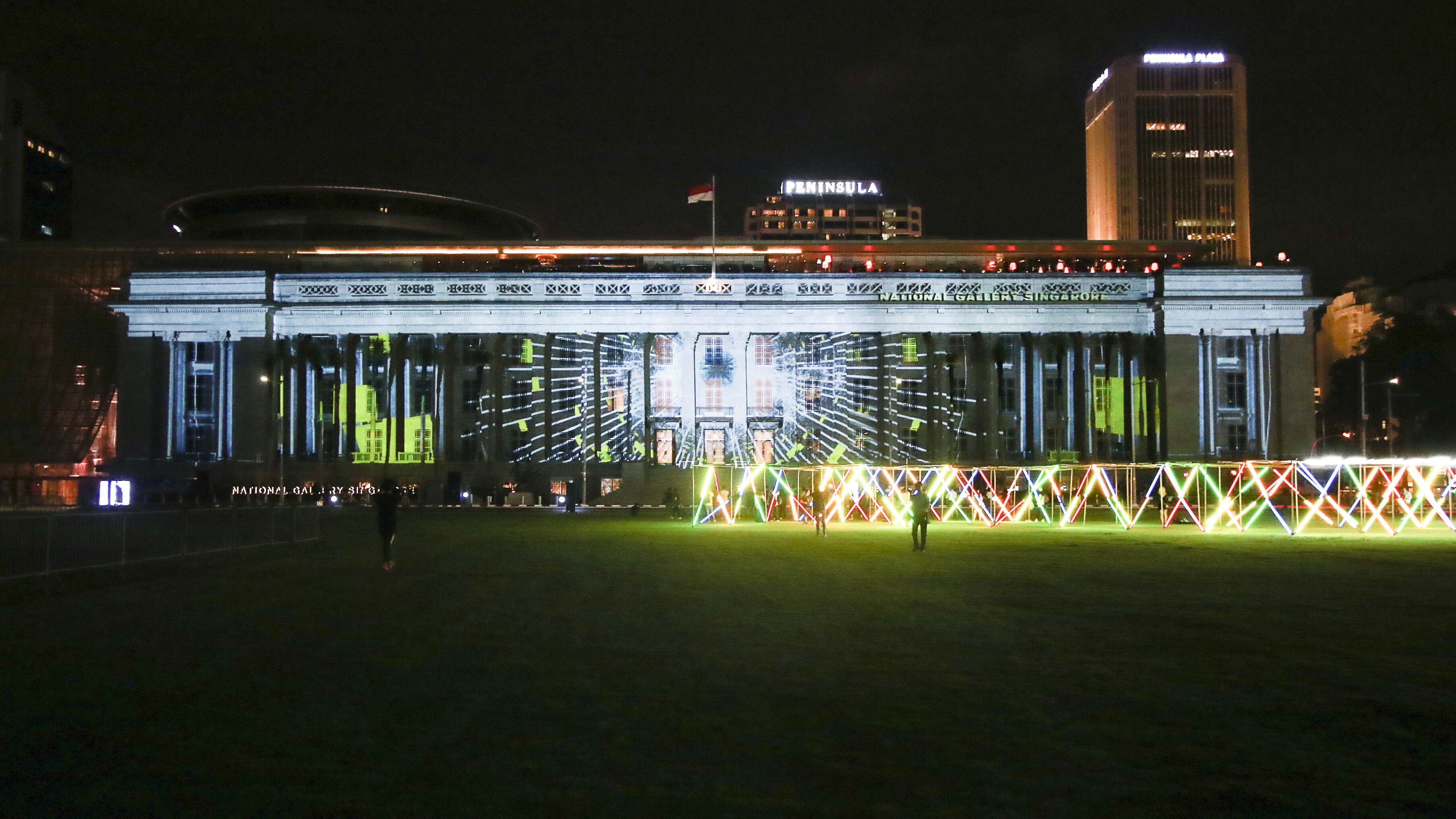 Anthony Poon’s large-scale and interactive maze brings life to the Padang with its constantly shifting and responsive lights.