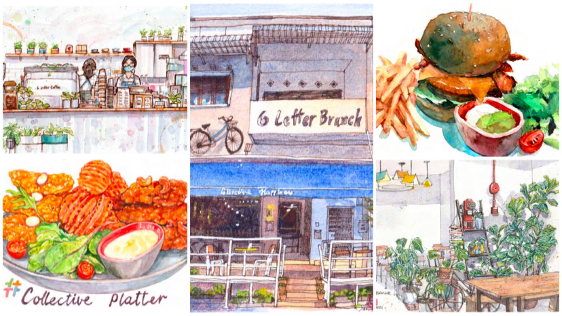 So when I heard that James and his fellow artists from Cafe Sketchers Singapore were holding a small art exhibition at 6 Letter Brunch, die-die confirm had to go see. Also a great excuse to makan lah.