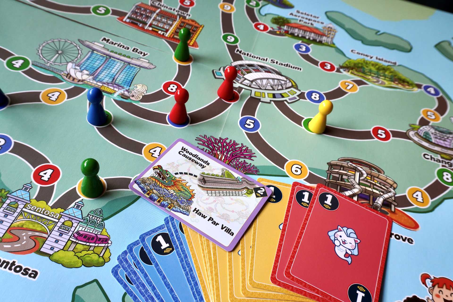 Introducing a fun, family-friendly board game featuring Merli and Singapore's landmarks. Designed and illustrated in Singapore, Let's Go is a fast-paced game for children ages 4 and up which encourages them to develop simple arithmetic and problem-solving skills while racing each other to various landmarks around our sunny island.