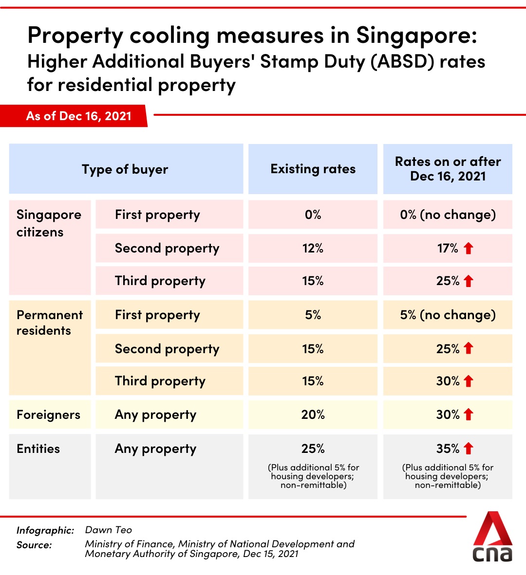 - Additional Buyer’s Stamp Duty (ABSD) rates were mostly raised across the board.