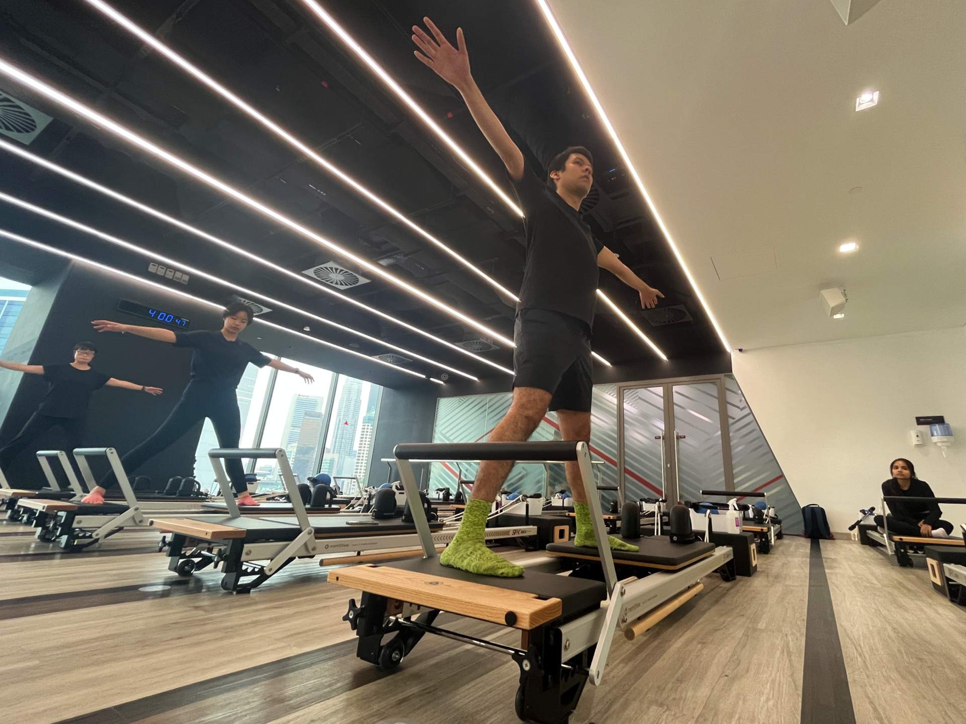 Actually, it was a 45-minute full-body workout. I got to try three different Pilates sessions in 15-minute segments using a machine called the “Reformer”, and did everything from leg lifts to all sorts of stretches.