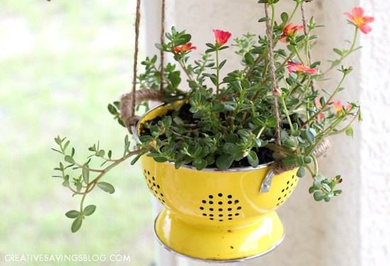 Got a rusted strainer on your hands? While you can’t use it for draining out veggies or pasta anymore, it’s the perfect thing for holding hanging flower pots. Just line the inside with landscaping cloth, tie rope to the handles for that rustic porch décor and hang your favourite pot plant from it.
