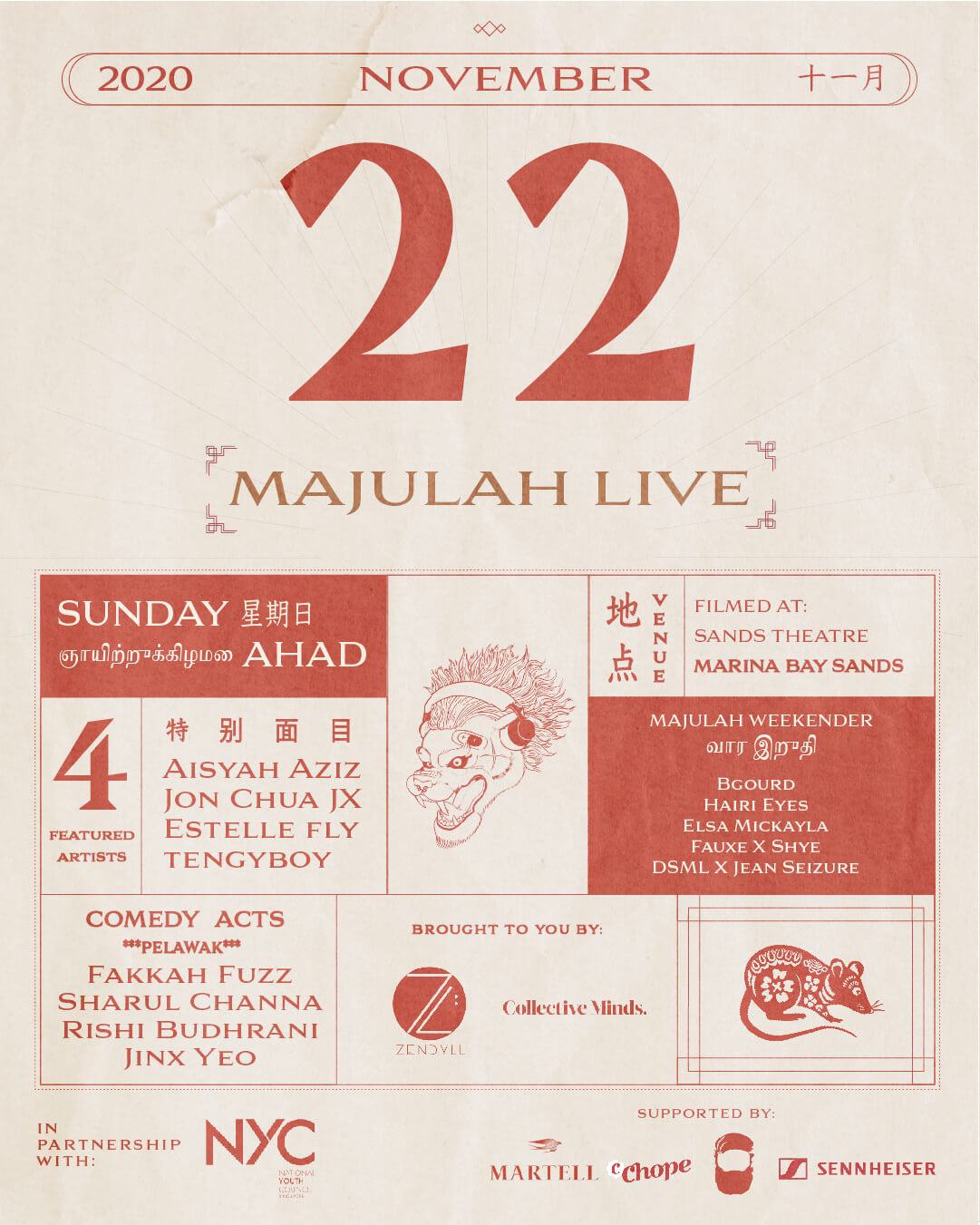 Coming to you this November, the event will be filmed at Marina Bay Sands and is organised by Zendyll Music Agency and Collective Minds together with the National Youth Council.