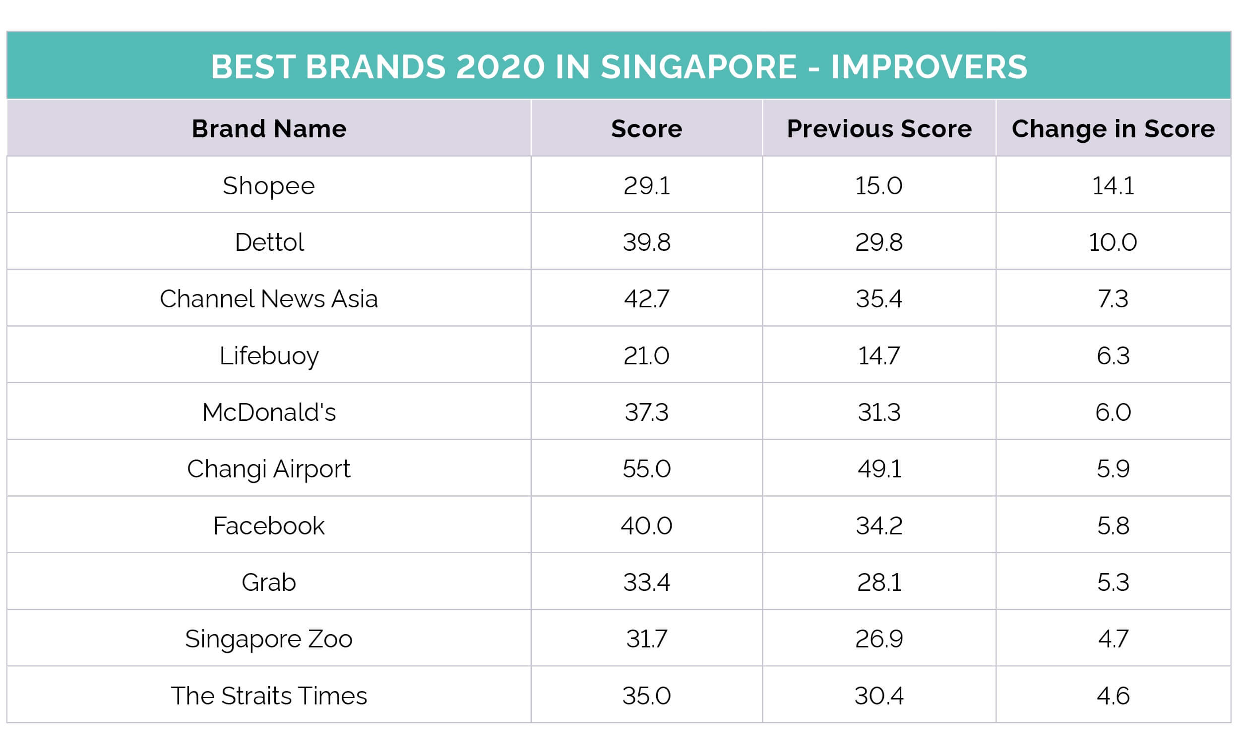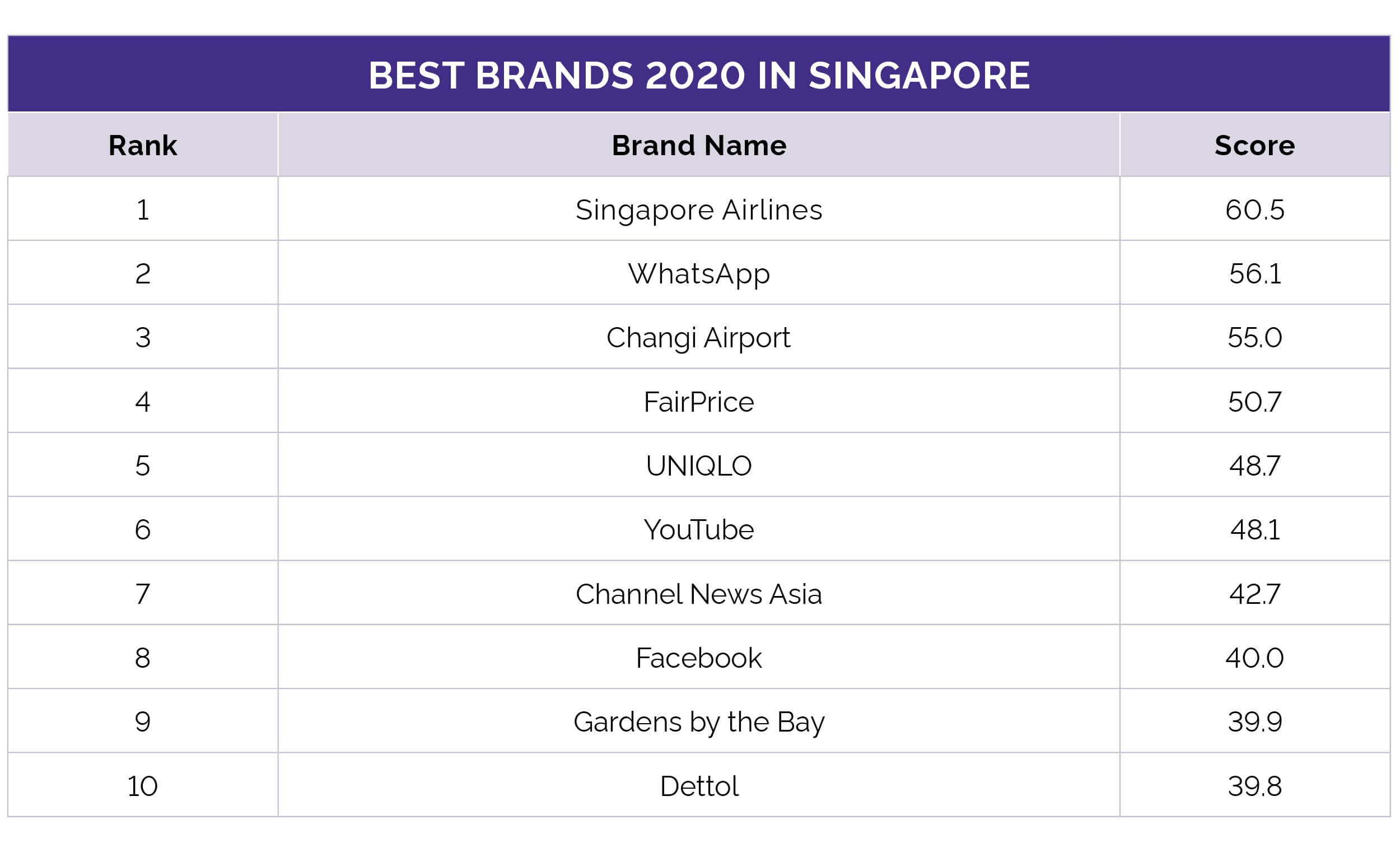 Surprisingly, Dettol only made it to 10th place on this list, trailing behind other brands like YouTube, Channel News Asia, Facebook and Gardens by the Bay.