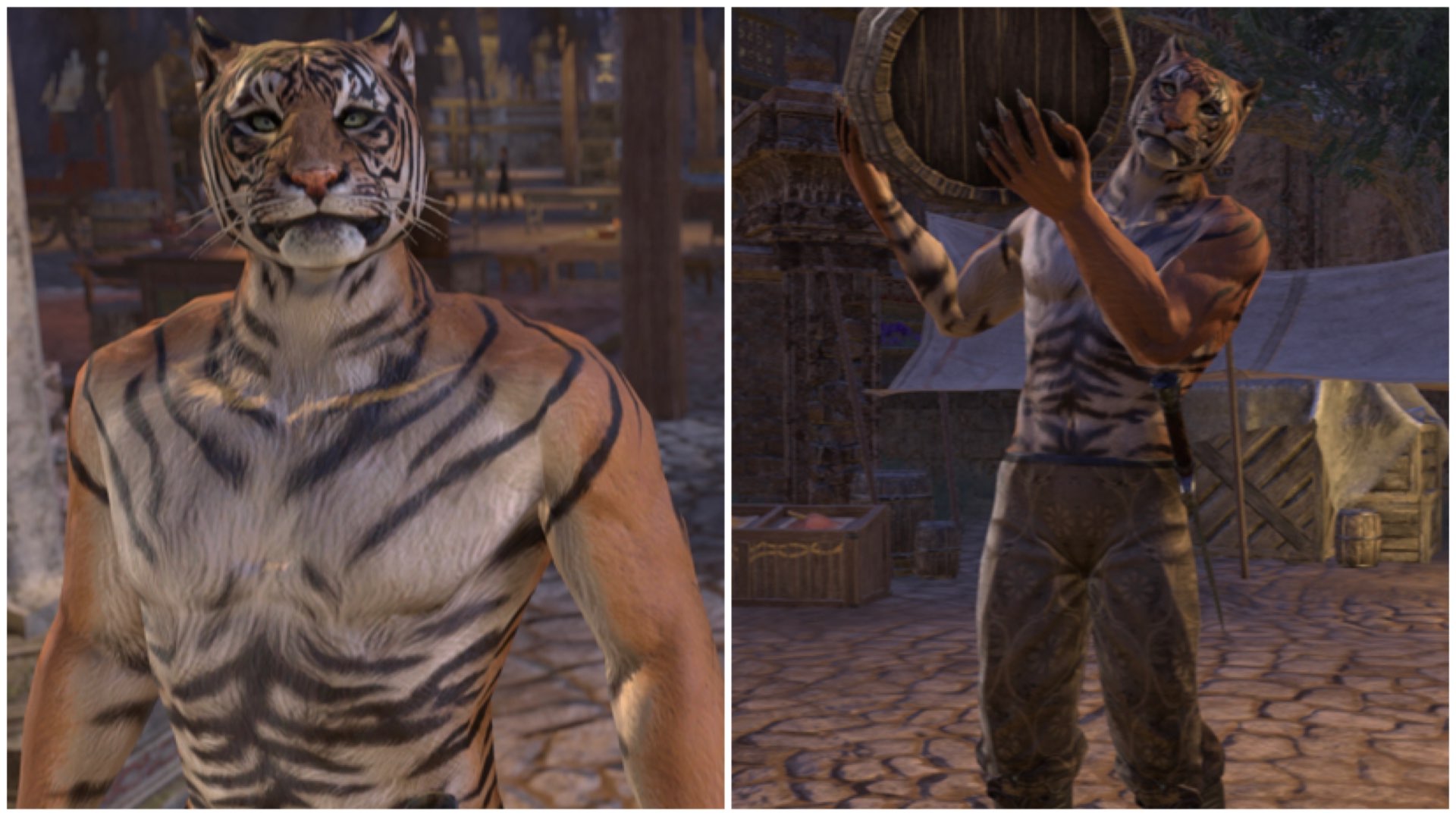 The Khajit are a feline race from "The Elder Scrolls" RPG series that you can choose to play as. Instead of using weapons, Khajit prefer to use their natural claws and have better agility and stealth compared to the other races. Imagine, saving the world as an assassin bipedal tiger.