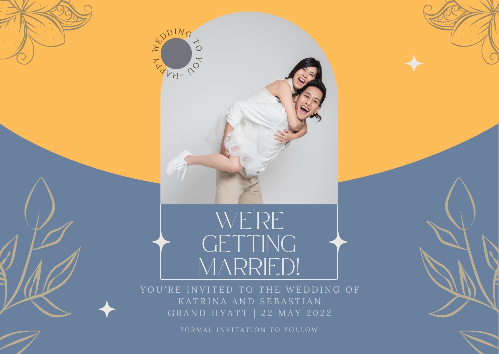 I made the e-invite below in just 10 minutes, using a template and stock photo. Choosing a template can take awhile because #decisionparalysis so I'd recommend setting aside some time to shortlist templates before your get started with your e-invite.