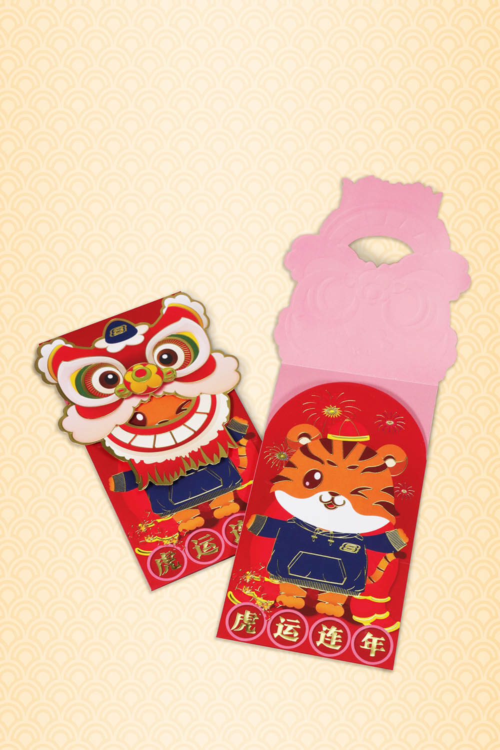 Available with every purchase of the Prosperity Fest, the Limited Edition Huat Huat Angpows contain six envelopes and a hidden tiger in each design.