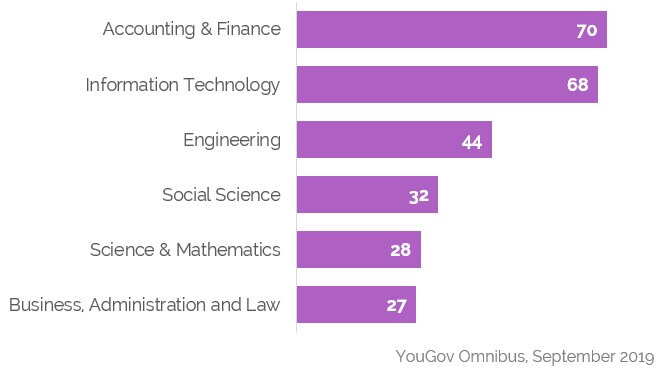 Of course, this varies across degrees. Oddly enough, Accounting and Finance has the highest chance of being relevant to graduates from that field, with 70% of them finding jobs that make use of their degrees.