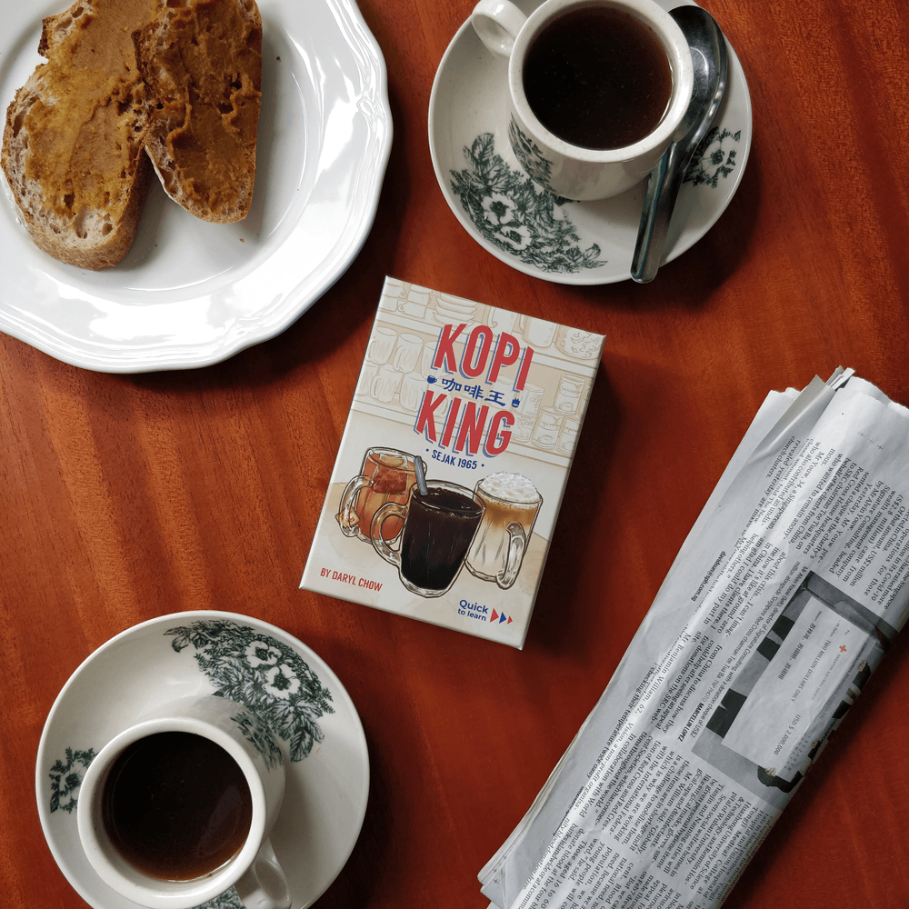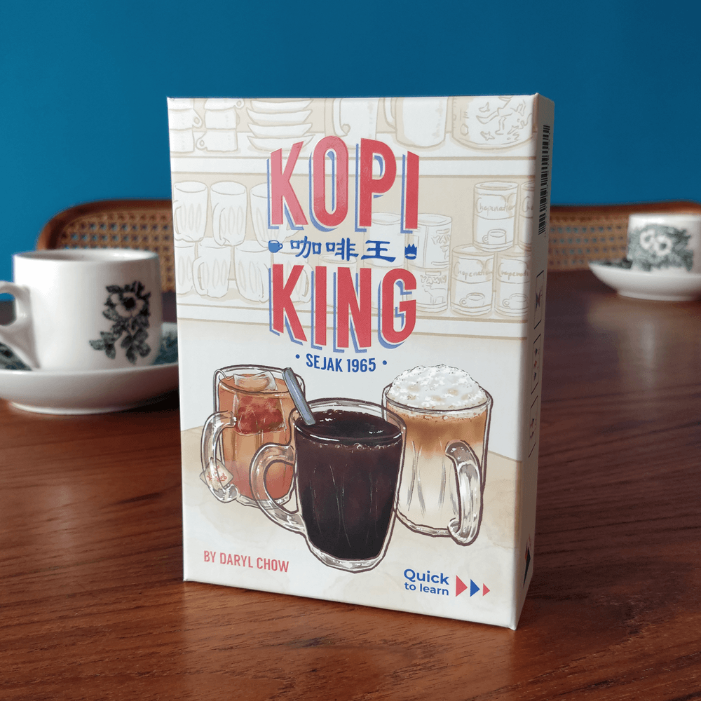 Kopi King is the creation of Daryl Chow from Origame, a proudly Singaporean board game publisher founded in 2019 that aims to showcase the best of Asian culture and talent.