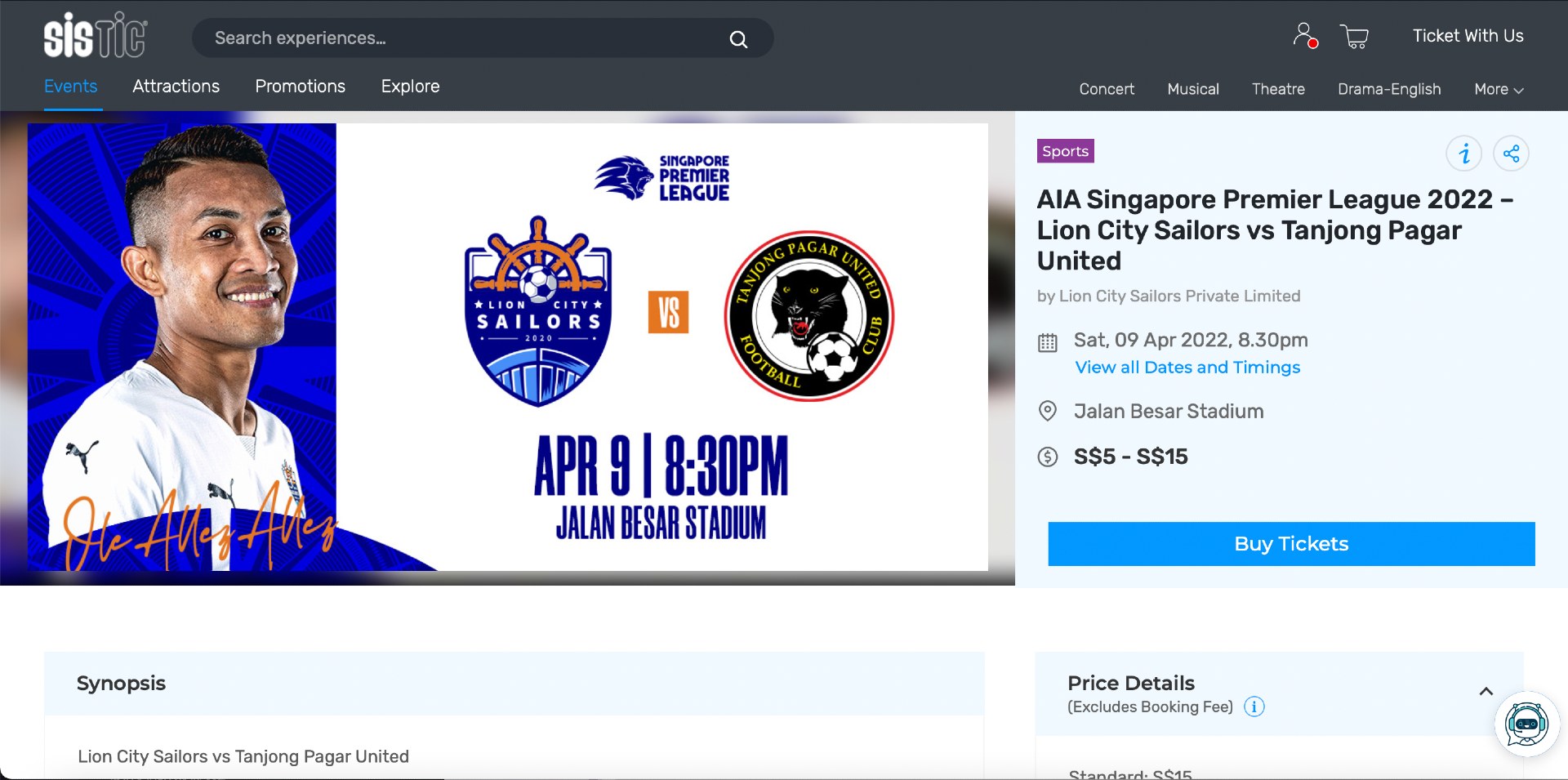 How to buy a Singapore Premier League match ticket?