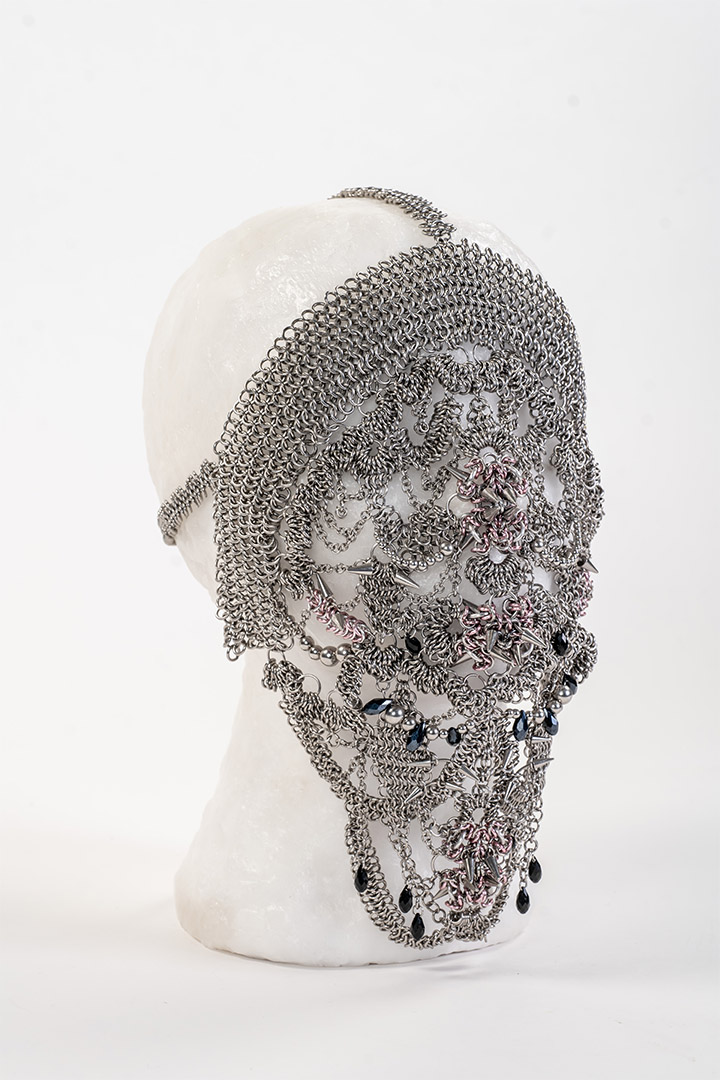 Fun Fact: This lace-like chainmail mask, designed by Closet Children's Rachael Cheong, draws inspiration from the iron maiden, a medieval torture device.