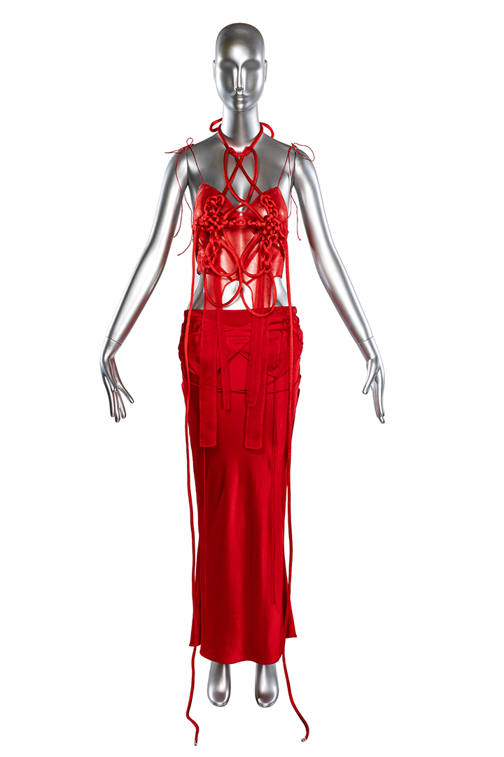 Fun Fact: While designing this dress, "King of Jacket" Thomas Wee eliminated all the elements he considers unnecessary, such as zips, buttons, hooks, belts, and joints, until all that was left was a piece of fabric and a single seam.