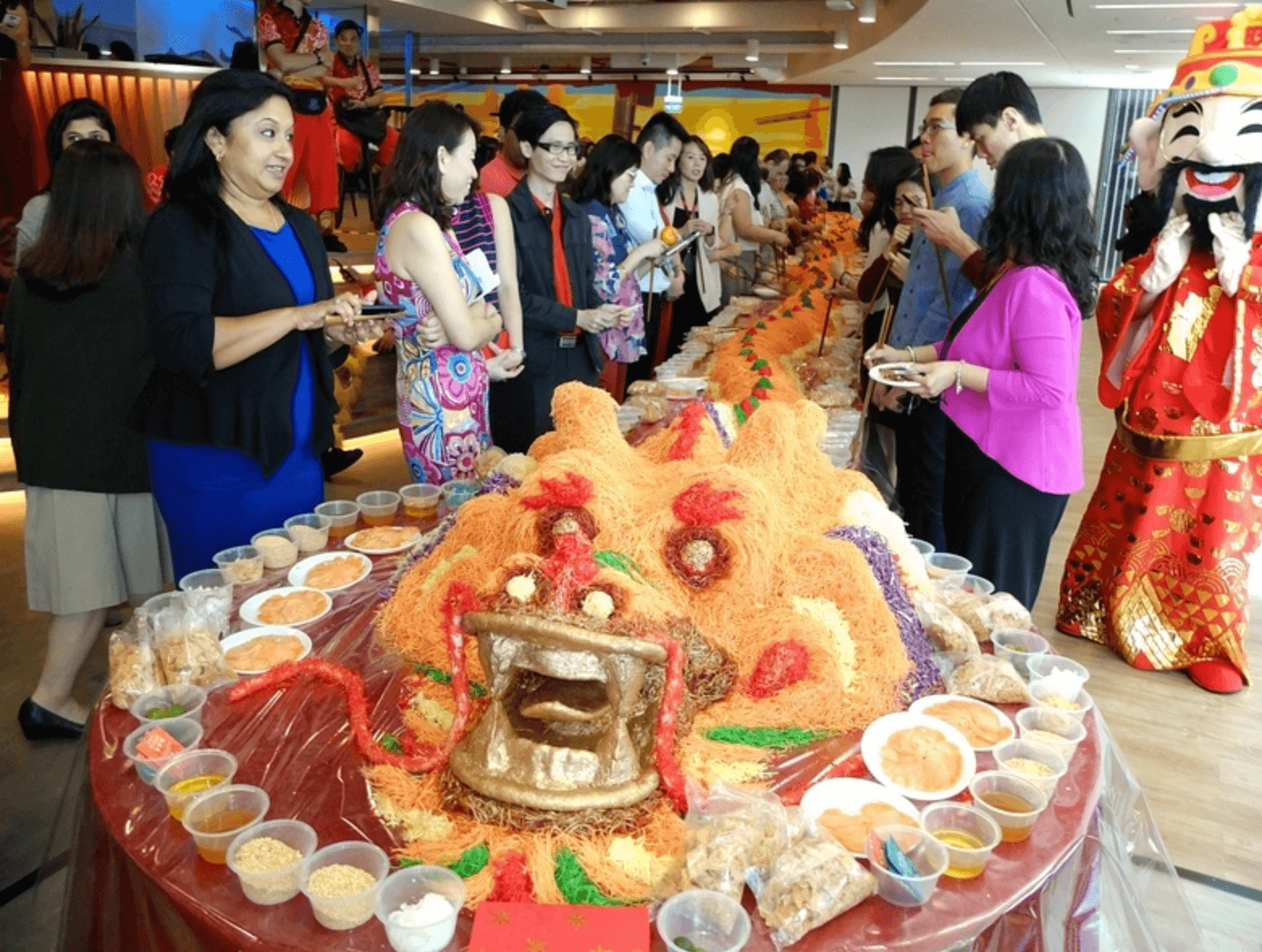 Considering there are only that few countries where lo hei is eaten, we aren’t surprised that this title went to Singapore. In 2018, Prudential Singapore set the record with a 343-metre yusheng shaped like a dragon. The entire thing took 8 hours to assemble and was made of 2,880 kg of vegetables and 29 kg of fish. We feel very sorry for the clean-up crew since we already make such an awful mess at a CNY table of 10 salad tossers.
