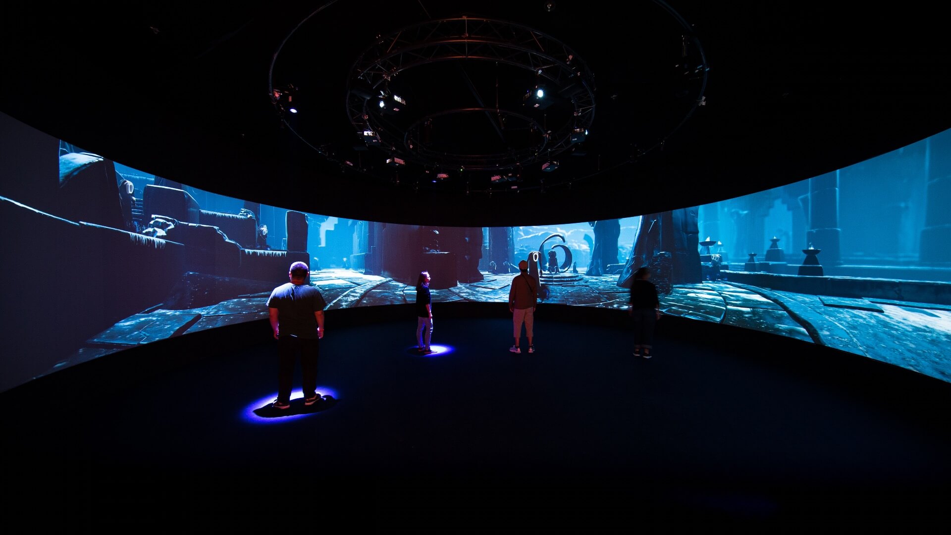 This is the only part of the exhibition that has a “story” element in it, and it's based on "RiME". Another multiplayer “game”, you and the other visitors move the story along by stepping on circular spots of light when they appear on the floor. This makes things happen on the near 360-degree screen in front of you.