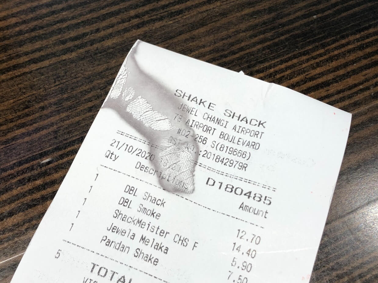 We decided to have our “last meal” together. Something atas like Shake Shack at Jewel sounded good. But when my friend came back with our orders, the receipt had his fingerprint embedded deep onto the paper. I was a little freaked, but it was just a tranfer from the hand sanitiser.