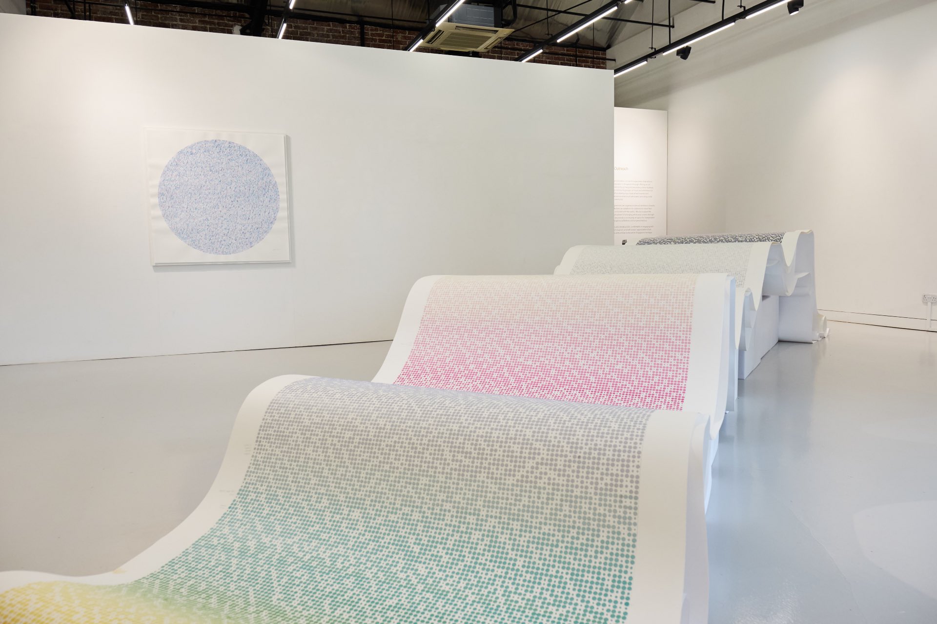 Eun Vivian’s Lee wavy 10m paper installation was made with paint from seashells, and it was created as her response to the fear and uncertainty she felt from the pandemic - we can certainly relate. A short video of how she explains art helped her mental health will be presented alongside her work.