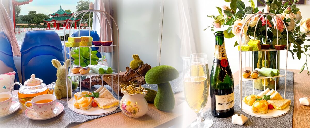 This unique journey promises luxury and comfort in the form of fairy lights, plush pillows and floral decor, as well as delectable treats like kueh dadar, blueberry cheese tarts and other sweet snacks served alongside a steaming pot of Earl Grey Tea. For added flair, the dainty bites are served in an avant garde three-tier "bird cage".