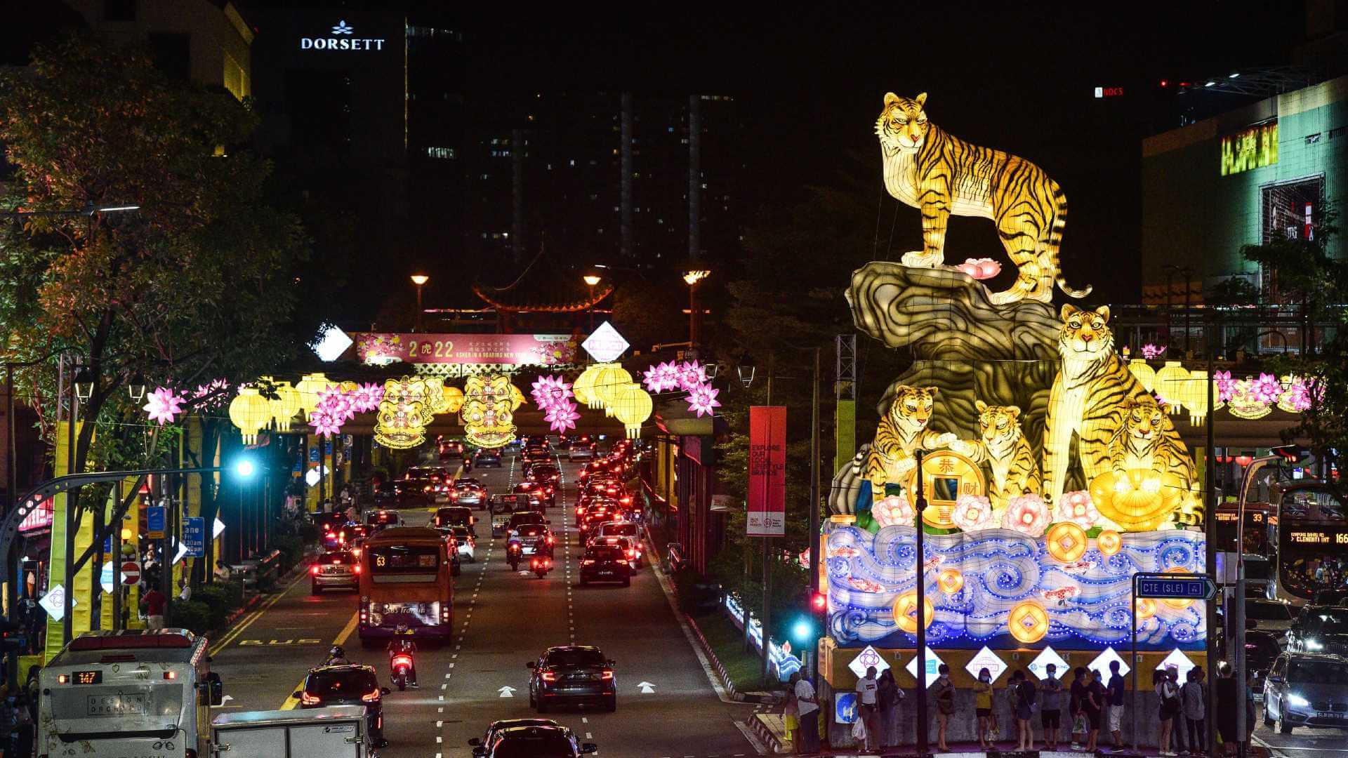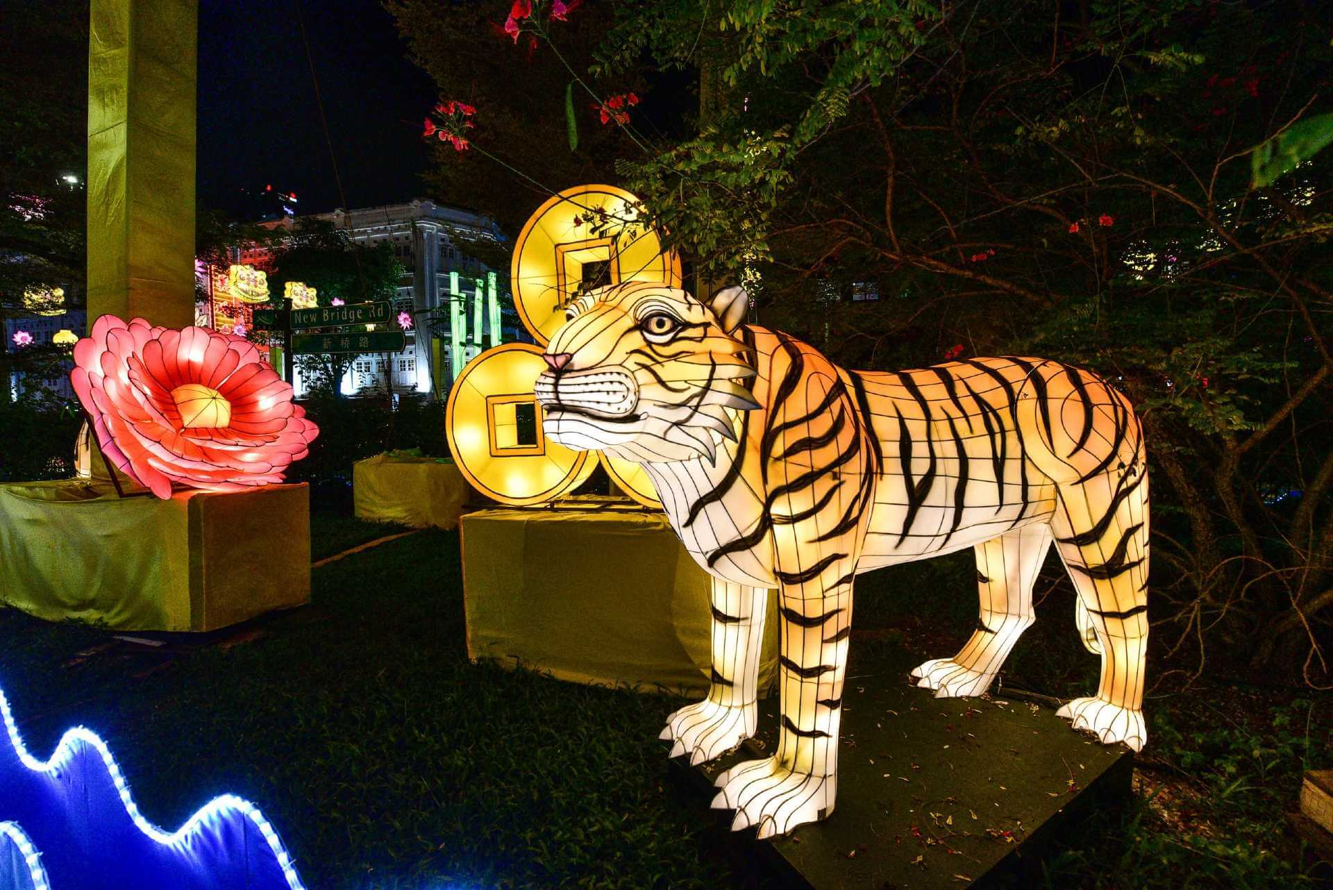As Chinese New Year approaches, Chinatown comes to life with sculptured lanterns and light installations of (what else?) tigers and their cubs.