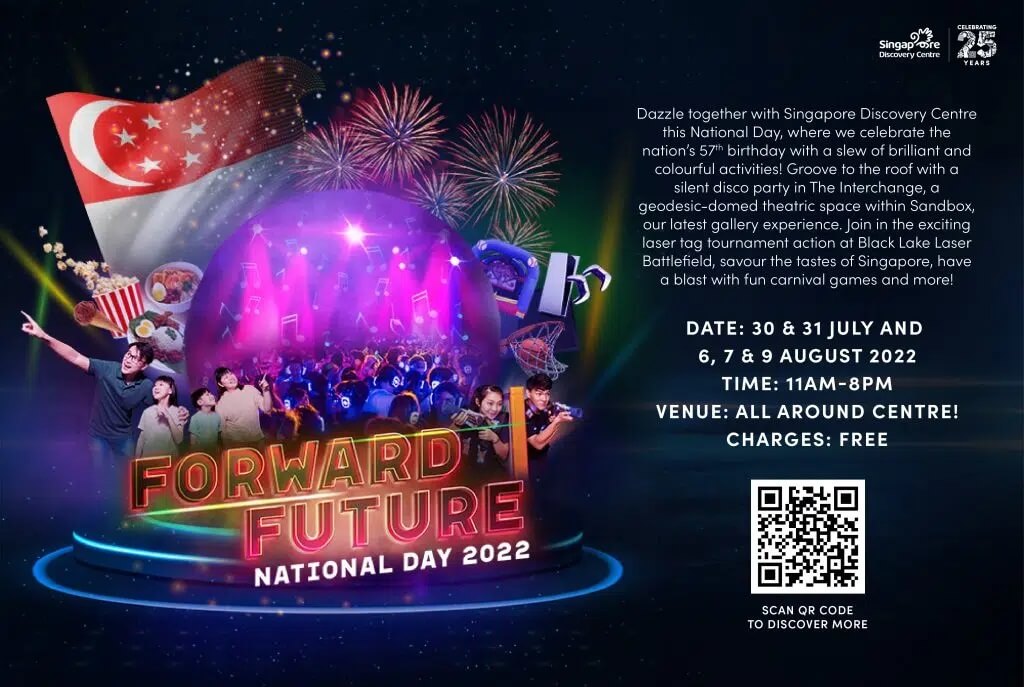 Celebrate National Day with a series of colourful activities at Singapore Discovery Centre's Forward Future. Join an exciting laser tag tournament at Black Lake Laser Battlefield, don colourful headphones and groove to the beat at a silent disco party, have a blast with old-school carnival games, and much more.