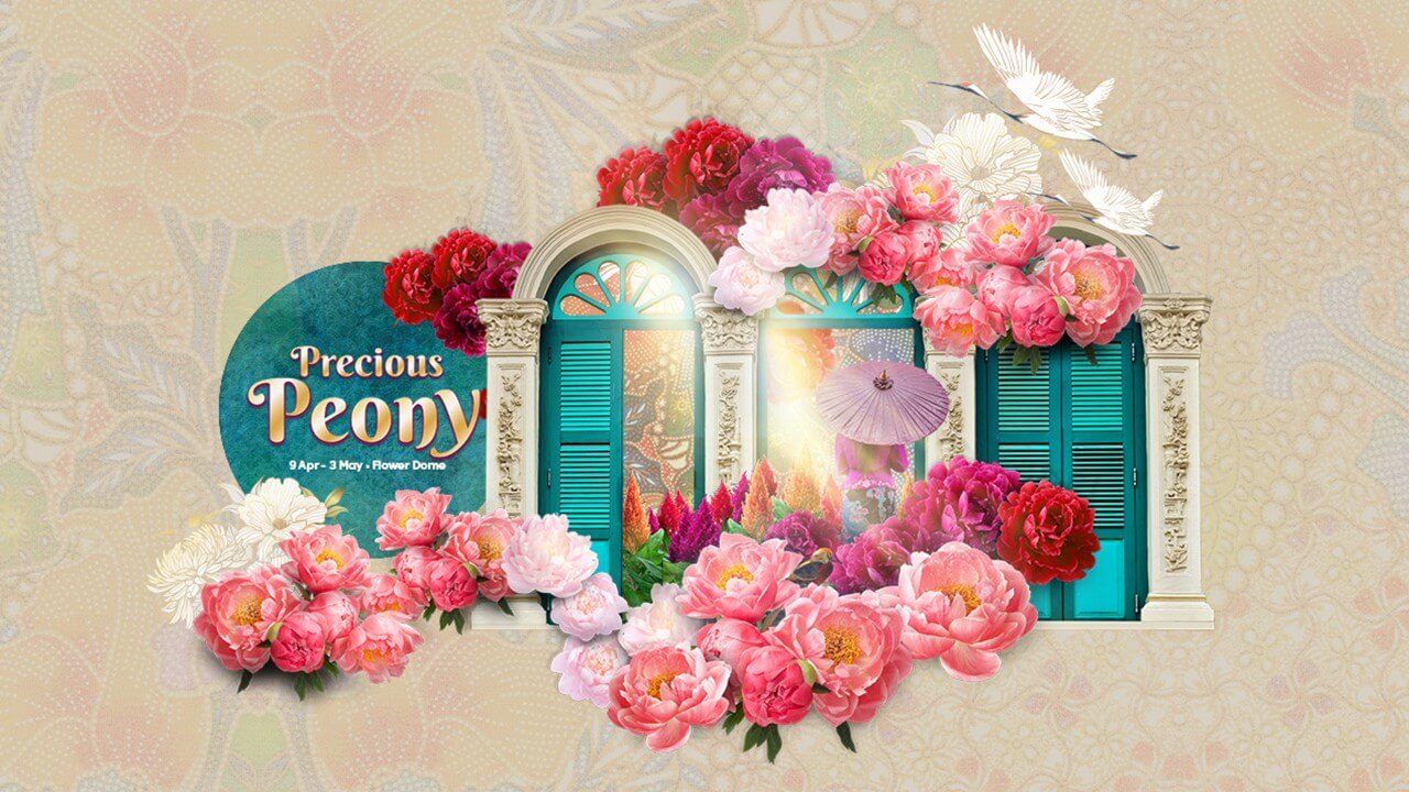 Be wowed by the picturesque landscape of vibrant ornamental peonies from China, Japan and the Netherlands on display, then experience rich depictions of peonies in Chinese cultural artefacts through various rare antiques including a Peranakan blackwood bench on loan from the Asian Civilisations Museum, a centuries-old iron-splash glazed blackware vase contributed by the Society of Chinese Ceramics Studies, and intricate Peranakan hand-beaded slippers from The Intan.