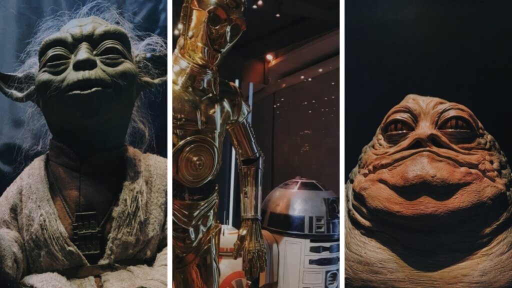 In the exhibiton: You can view original sketches of Yoda and how he came to be. Did you know original sketches of him look like a garden gnome? And that the finalised look of his face derived inspiration from Albert Einstein's appearance?