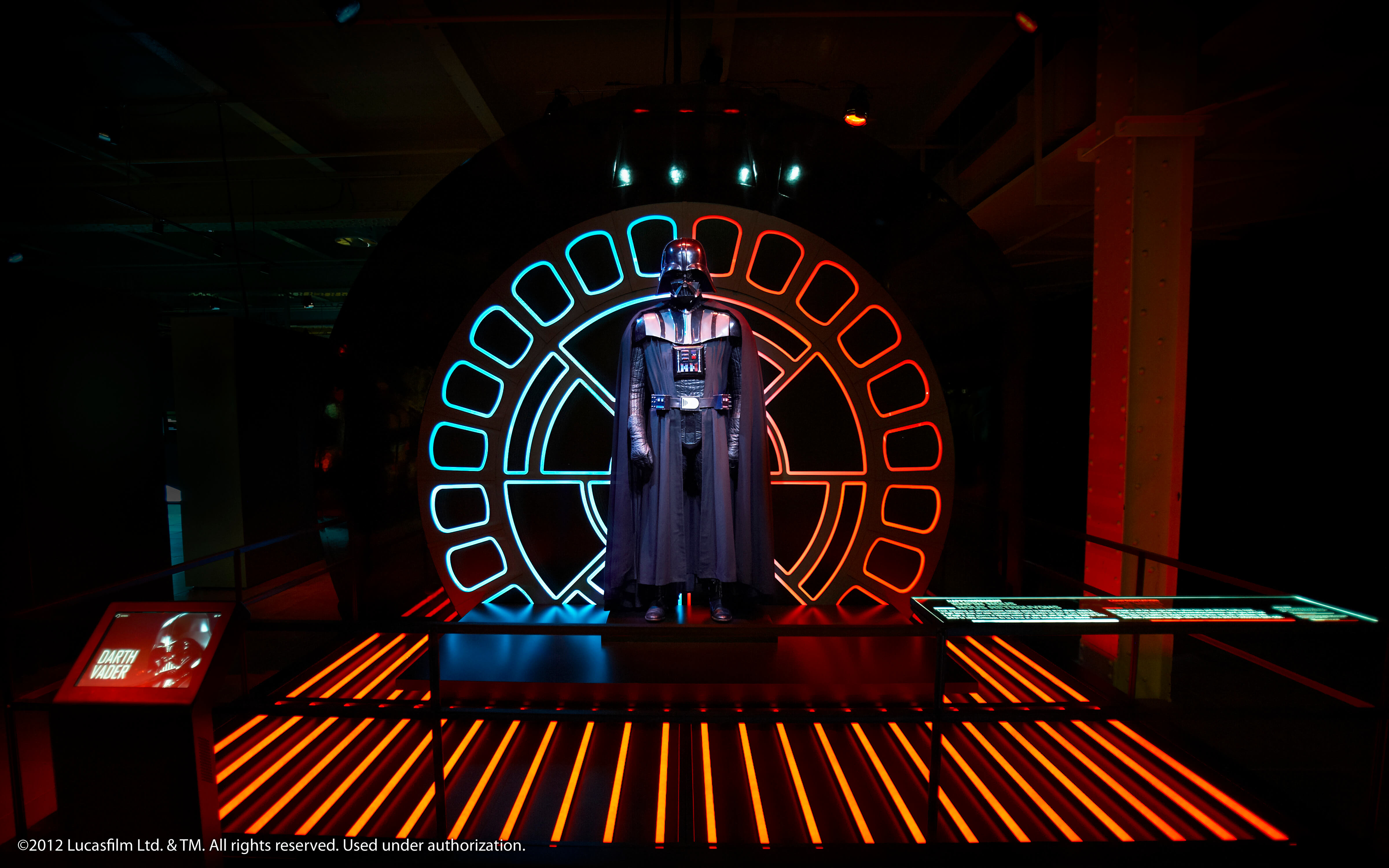 In the exhibition: Here's a fun tip: As part of the formation of your character identity (via various interactive checkpoints throughout the showcase), you get to choose a side to join at the end. Pick the Dark Side. The final results are cool AF.